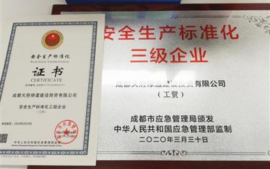 成都天府绿道建设投资集团有限公司正式取得“国家安全生产标准化三级企业”证书